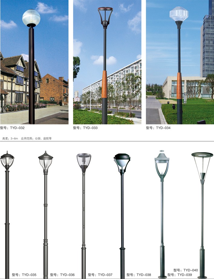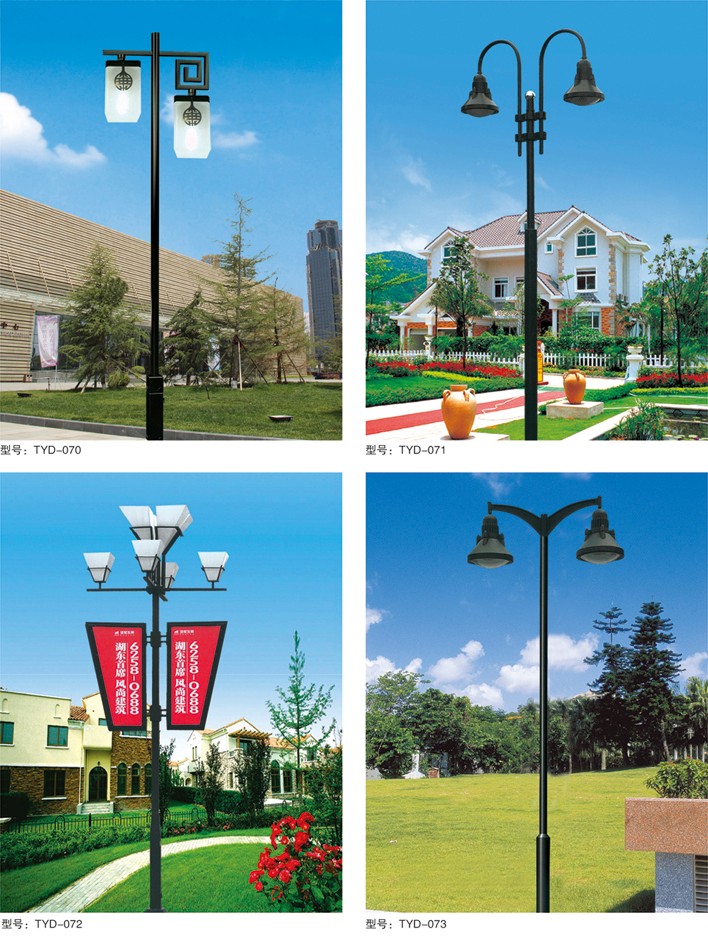 庭院燈系列燈飾照明是園林景區(qū)、文化休閑娛樂場所、步行街、商業(yè)街、住宅小區(qū)、行車道兩側(cè)等場所所普遍使用的裝飾及照明光源配置形式,是裝飾型照明燈飾產(chǎn)品。燈桿材質(zhì)多樣,光源運(yùn)用靈活多變,結(jié)構(gòu)形態(tài)千姿百態(tài),是美化、亮化,綠化的有機(jī)結(jié)合,光與影。燈與藝術(shù)的完美結(jié)合。