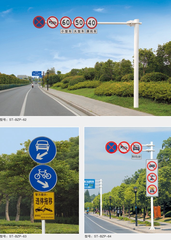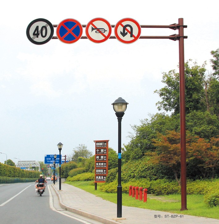 產(chǎn)品特點:● 交通標志牌是用來提醒、警示和引導(dǎo)交通參與者, 在行駛中根據(jù)道路情況提前采取相應(yīng)措施, 以切實維護交通安全的重要設(shè)施?!?桿件表面應(yīng)進行熱鍍鋅處理,立桿橫臂、法蘭盤以及各種連接件采用熱浸鍍……