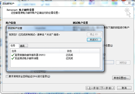 點擊“下一步”,系統(tǒng)會自動進行檢測,成功后顯示界面如下。然后點擊“關(guān)閉”即可完成設置。
