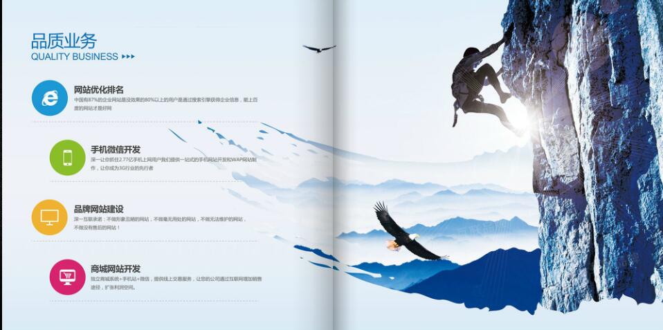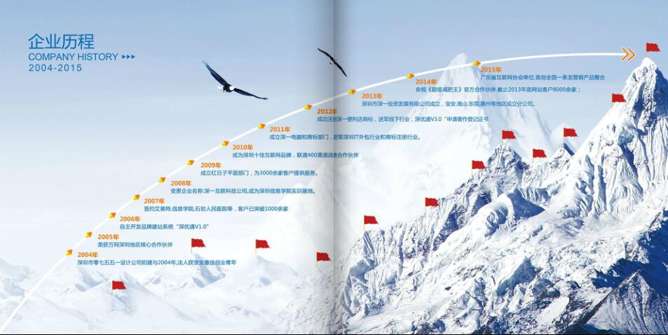畫(huà)冊(cè)包含:企業(yè)介紹、發(fā)展歷程、核心業(yè)務(wù)、增值服務(wù)、經(jīng)典案例、知名客戶(hù)、售后服務(wù)等方面內(nèi)容,涵蓋了深一網(wǎng)站建設(shè)等一條龍營(yíng)銷(xiāo)服務(wù)。